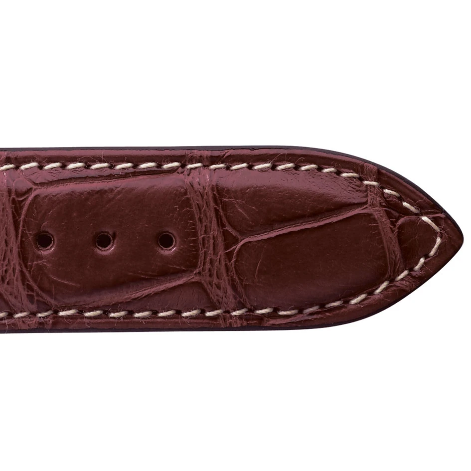L’Ă©paisseur du bracelet cuir Crocodile Mat est de 5 mm au boĂ®tier amincie Ă 2.5 mm Ă la pointe.