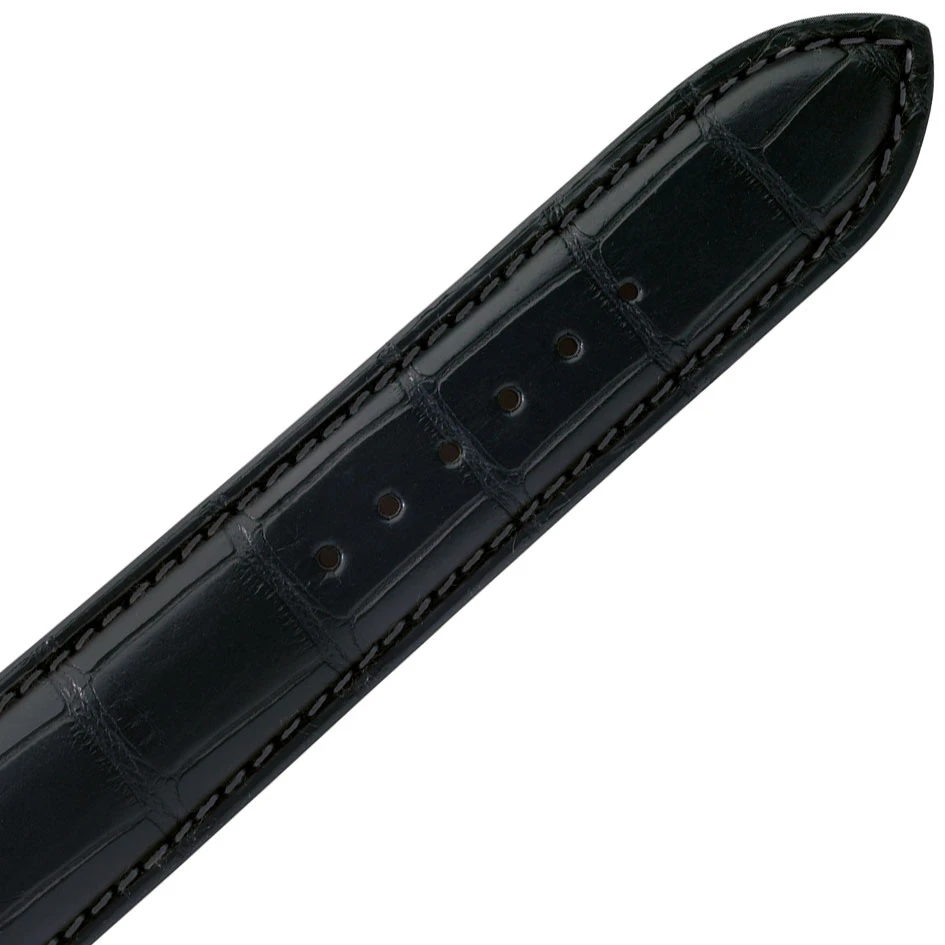 L’Ă©paisseur du bracelet cuir Crocodile Mat est de 5 mm au boĂ®tier amincie Ă 2.5 mm Ă la pointe.