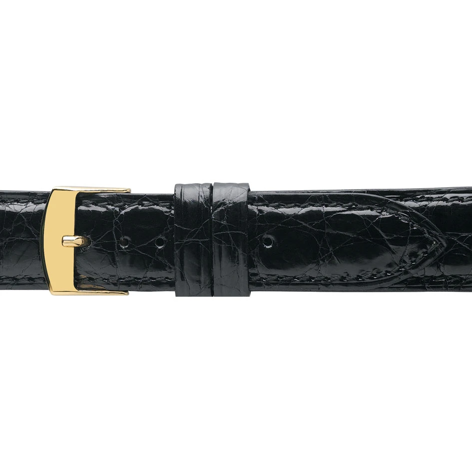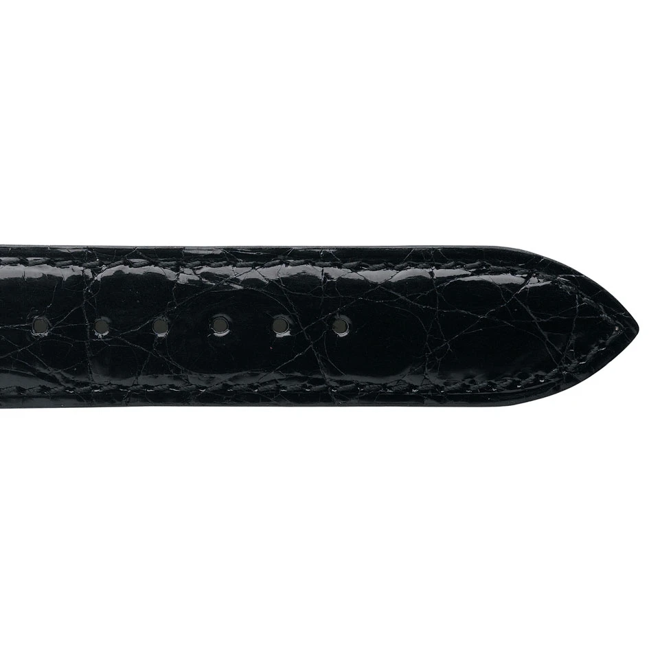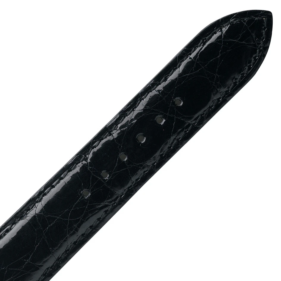 Le bracelet de montre crocodile noir a une doublure cuir.