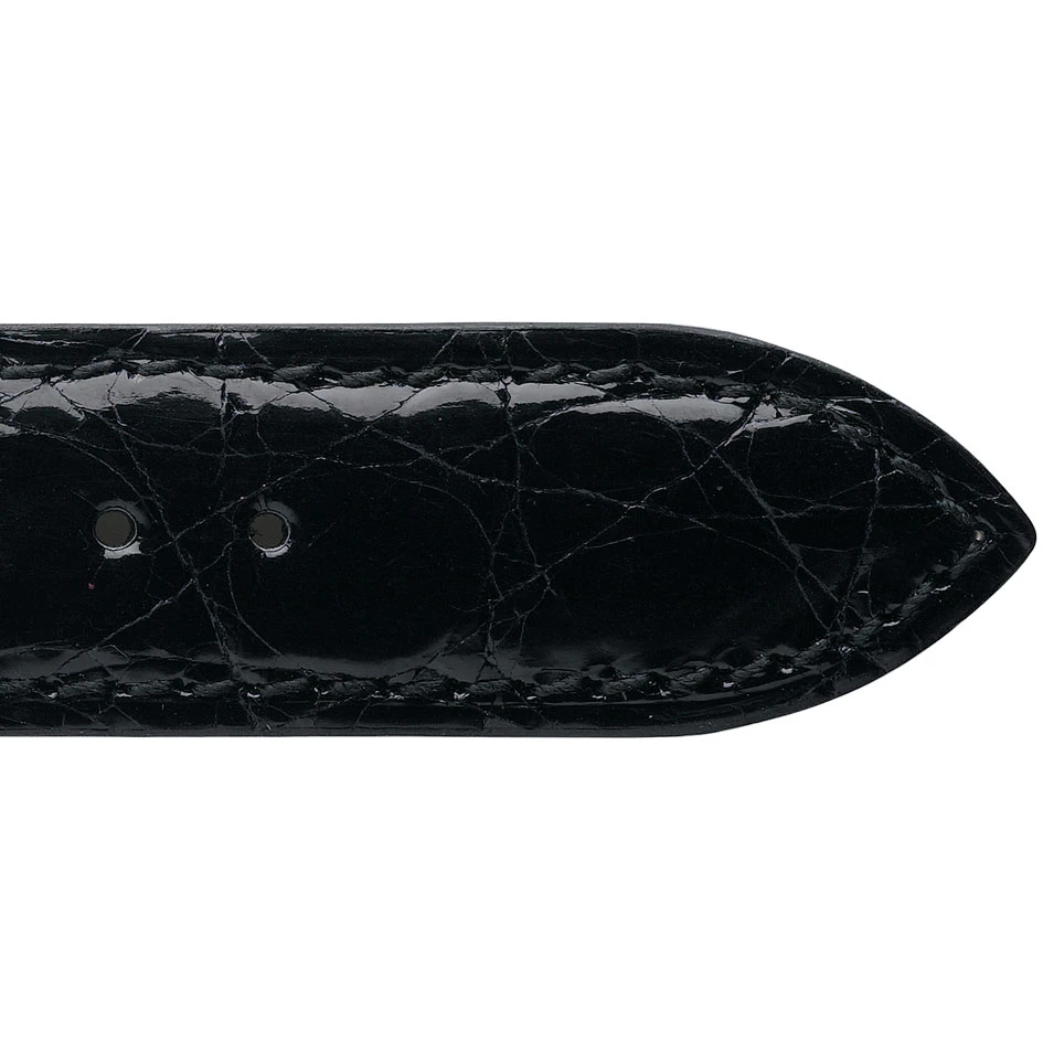 L’Ă©paisseur du bracelet cuir Crocodile Mat est de 3 mm au boĂ®tier amincie Ă 2.5 mm Ă la pointe.