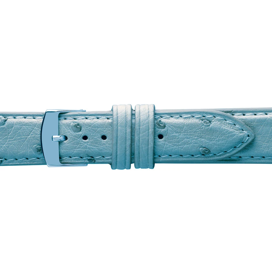 Le bracelet de montre en Autruche Bleu Ciel a une doublure en cuir.