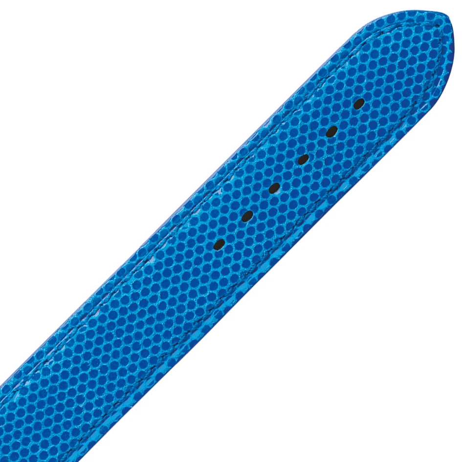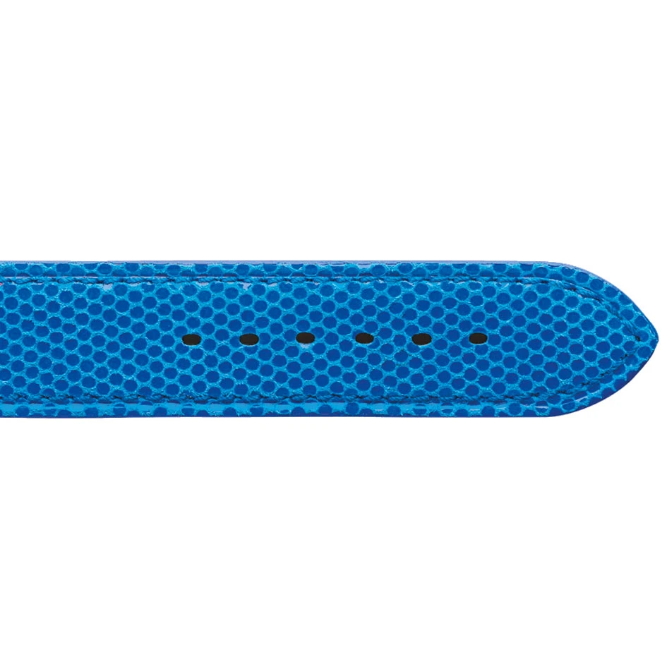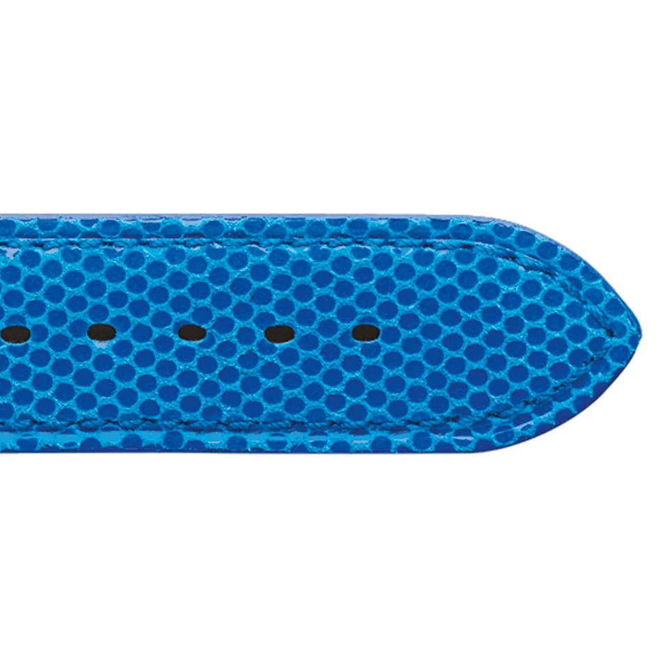 Le bracelet de montre en cuir Chevreau façon Lézard est bleu a une doublure en cuir.