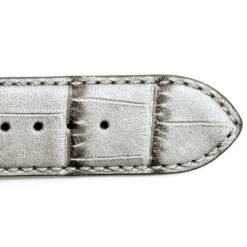 Le bracelet de montre en veau façon croco gris a une doublure en cuir.