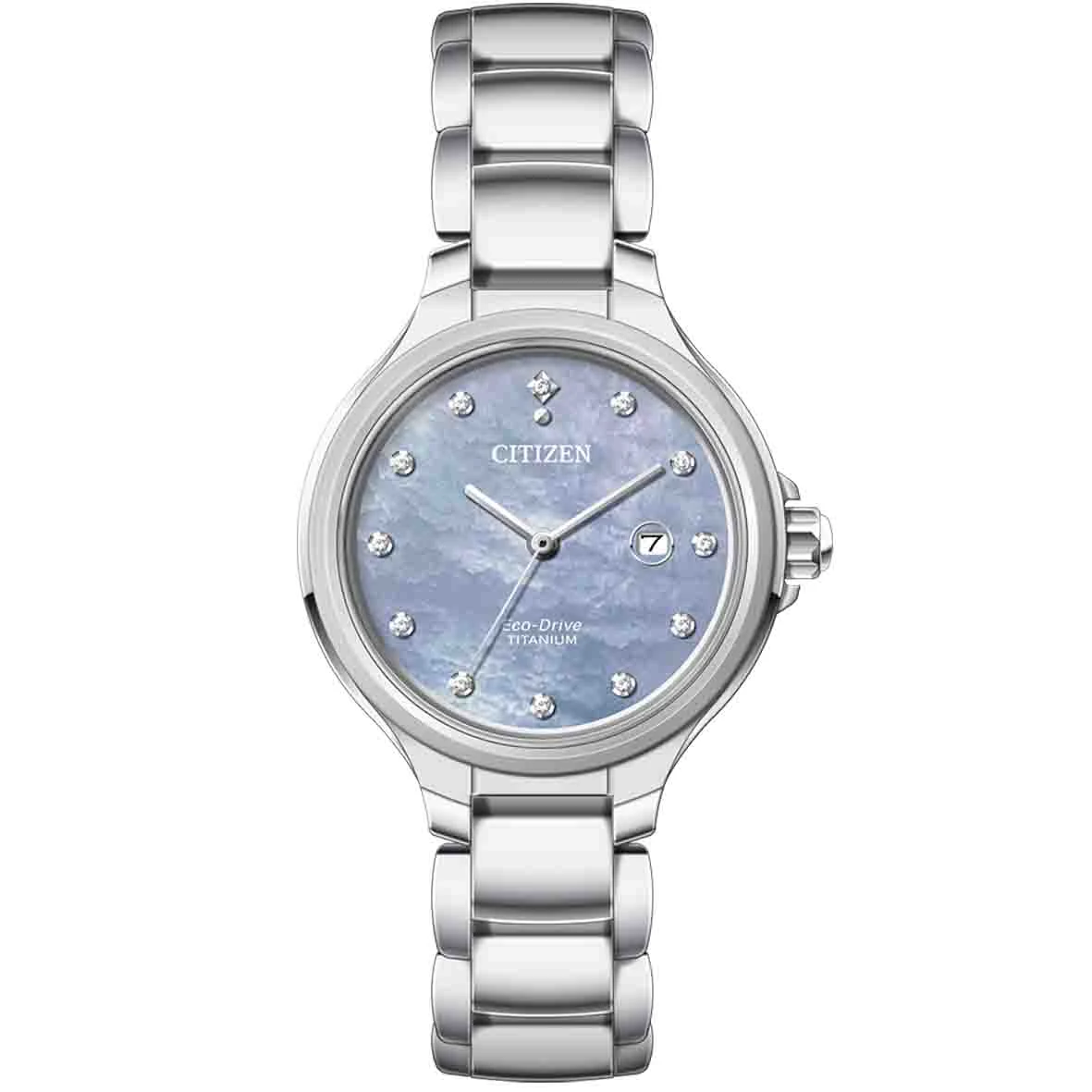 La montre Citizen EW2680-84D a un boĂ®tier et un bracelet en Super Titanium™ , ce qui garantit un faible poids, une grande rĂ©sistance et des propriĂ©tĂ©s anti-allergiques complètes. Grâce Ă une mĂ©thode de durcissement spĂ©ciale, la surface de ce titane est plus rĂ©sistante aux rayures que l’acier inoxydable. À l’intĂ©rieur du boĂ®tier, le mouvement interne Citizen E013 fonctionne de manière fiable, avec une batterie rechargeable lĂ©gère avec une rĂ©serve de marche allant jusqu’Ă Â 6 mois et dispose Ă©galement d’une fonction d’indicateur de batterie faible . En position 3, nous trouvons un affichage pratique de la date .