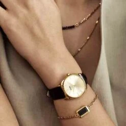 Avec son boîtier couleur or de 31,5mm et son cadran or poudré, cette petite merveille deviendra très vite votre touche en plus.