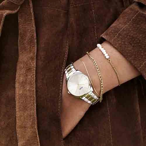 Grâce à son boîtier de 31,55mm couleur argent et or, ce petit trésor est pensé pour aller à la perfection à tous les poignets et tous les styles.