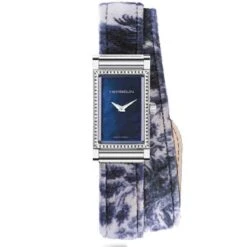 Lanière en velours imprimé Toile de Jouy Bracelet simple en cuir imprimé croco surpiqué sellier bleu