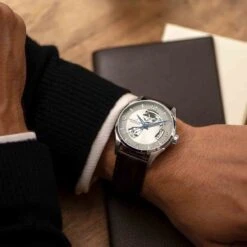 Un coup d’œil sur le cadran laisse entrevoir une partie de son mouvement automatique suisse.