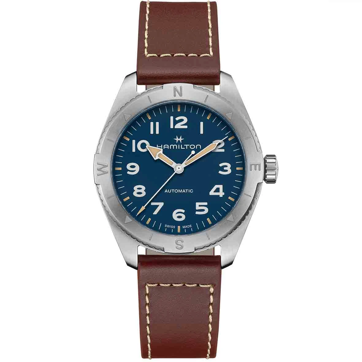 Arborant un cadran bleu texturé revêtu de Super-Luminova® pour une lisibilité optimale, la montre Khaki Field Expedition est robuste et répond à vos besoins.