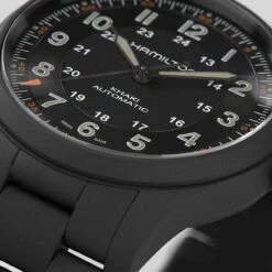 Dotée d’un boîtier en titane recouvert de PVD noir avec bracelet assorti, la Khaki Field Titanium 38 mm est une montre polyvalente qui peut être portée en toutes circonstances.