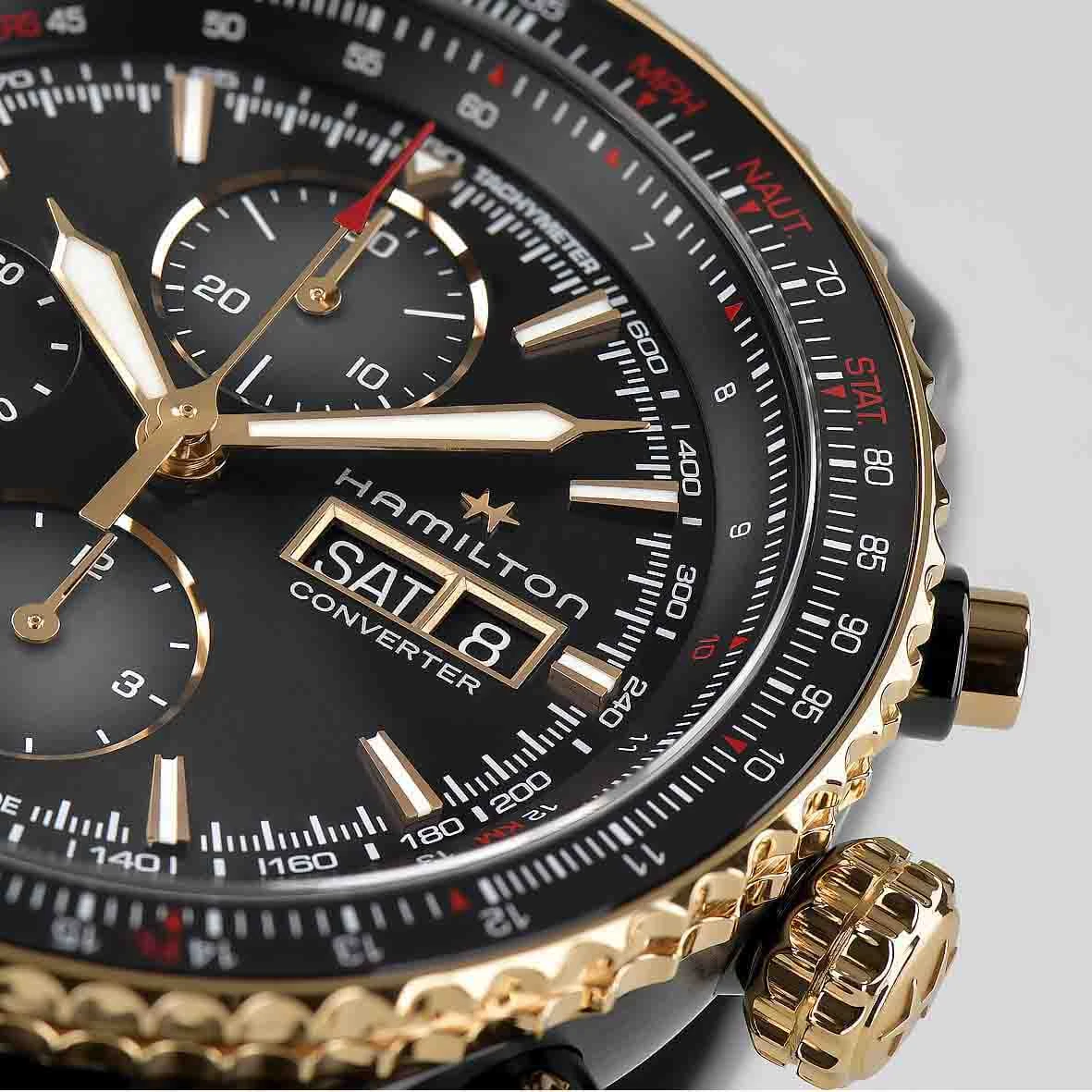 Ajoutez le mouvement chronographe automatique H-21-S avec son spiral en silicone anti-magnétique de haute qualité, et cette montre de pilote de 44 mm regroupe toutes les fonctions nécessaires pour votre prochain vol.