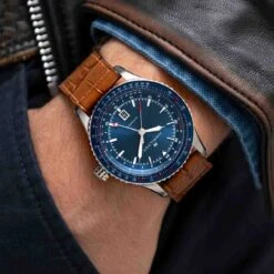 Sa lunette règle à calcul tournante bidirectionnelle convertit les unités et les devises, et sa fonction GMT vous garantira d’être à l’heure quel que soit le fuseau horaire. Avec une réserve de marche de 80 heures, cette montre de pilote de 44 mm vous accompagnera du cockpit à la salle de conférences.