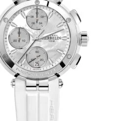 Le mouvement Suisse est à quartz. Le cadran en nacre blanc laisse apparaître 3 petits cadrans utilisable avec la fonction chronomètre.