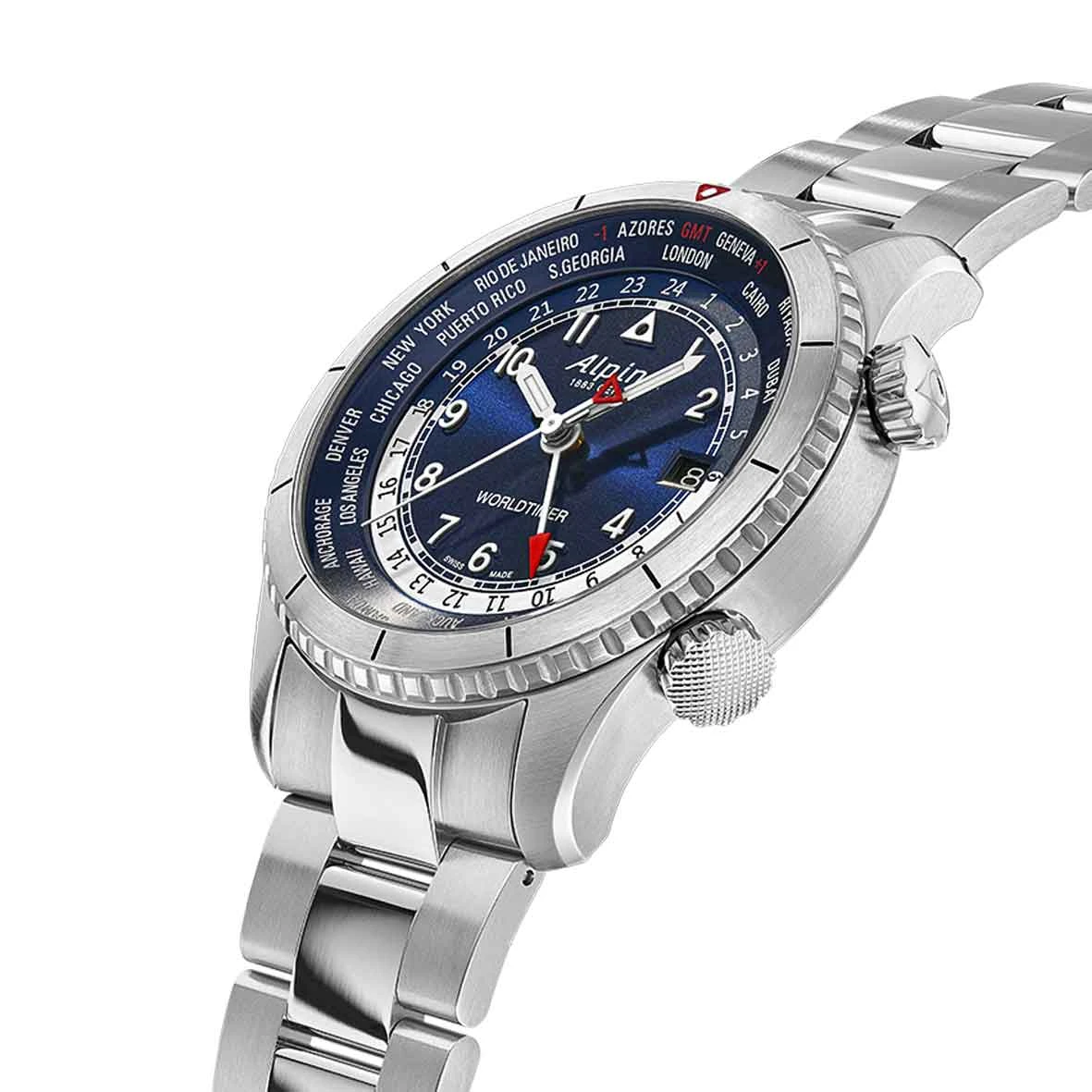 La montre Alpina Startimer Pilot Quartz Worldtimer, avec la rĂ©fĂ©rence AL-255N4S26B, est une pièce horlogère exceptionnelle qui incarne le mĂ©lange parfait entre le style pilote classique et la fonctionnalitĂ© d’un worldtimer.