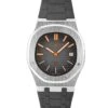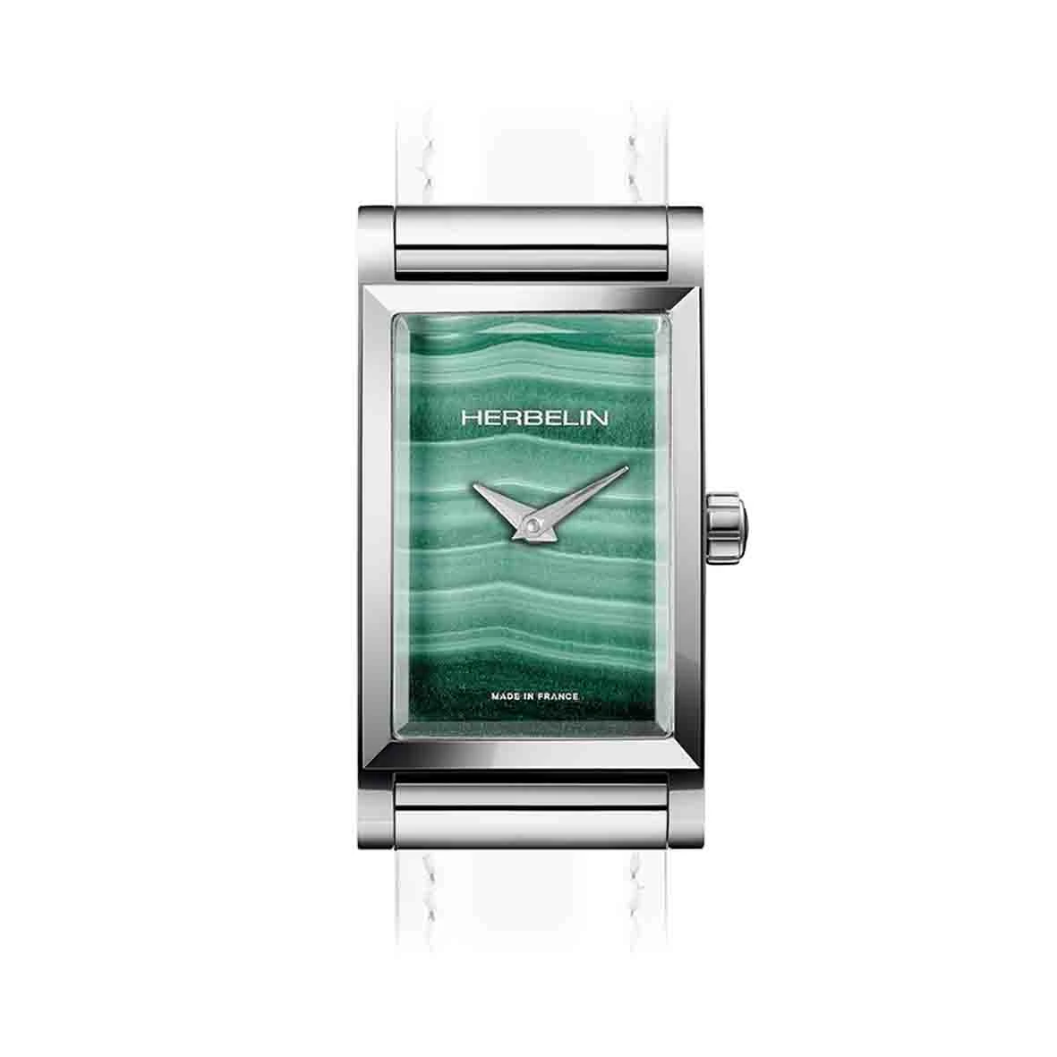 La montre rectangulaire a un boîtier large de 19 mm et haut de 27 mm en acier inoxydable.