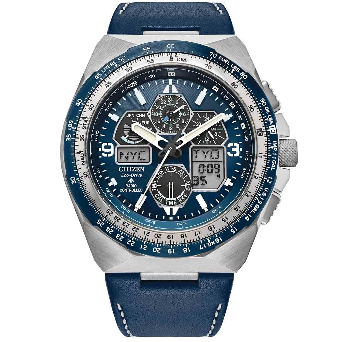 De la collection Promaster Sky de Citizen, cette montre radio-pilotĂ©e est la montre parfaite pour les voyageurs frĂ©quents et les jet-setters.Â