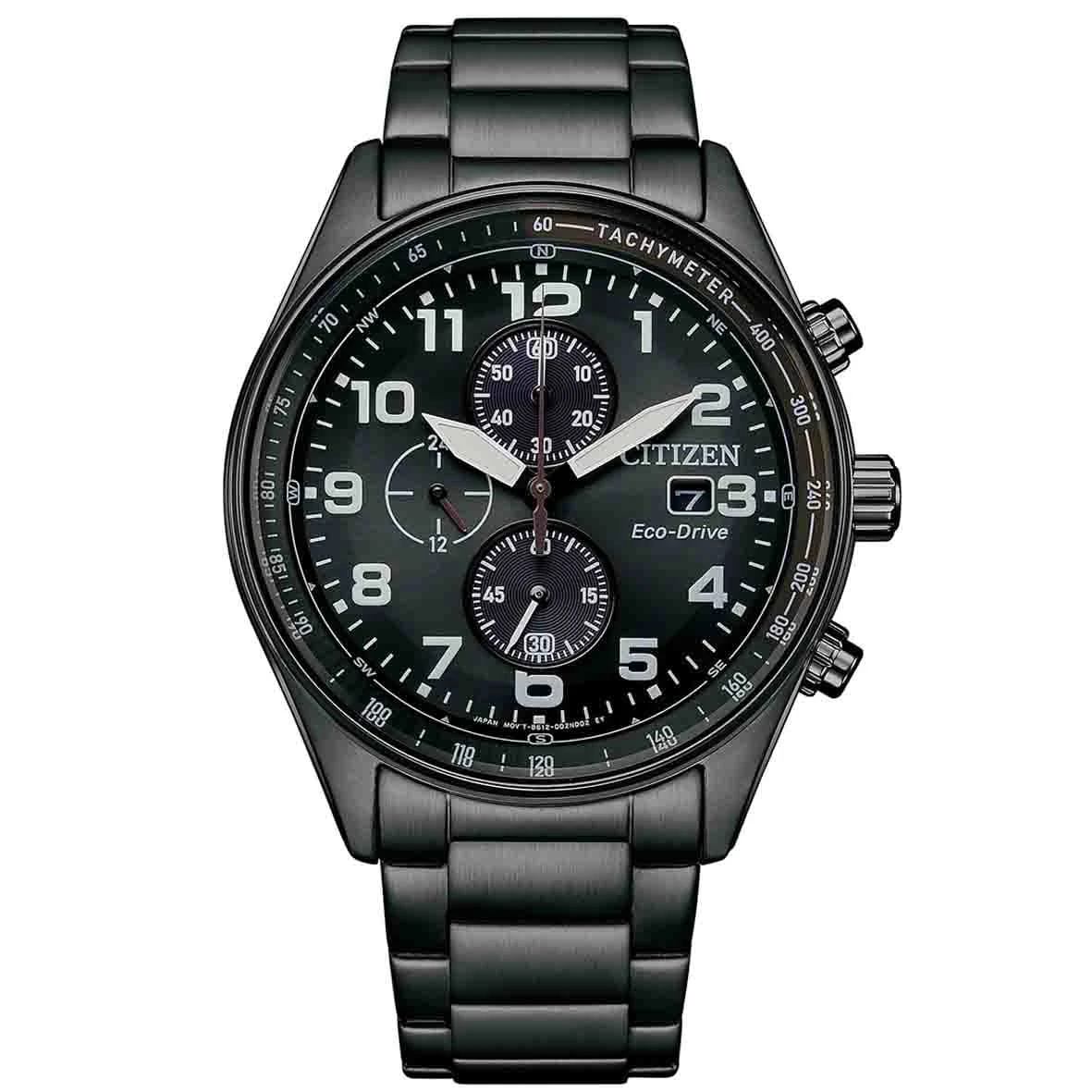 CaractĂ©ristiques du calibre : +/- 15 Sek per Monat , rĂ©serve de marche de 210 jours , affichage 24 heures , date , Eco-Drive , fonction d’avertissement de charge insuffisante , Stoppuhr : max.60 Min, 1/5 Sek
