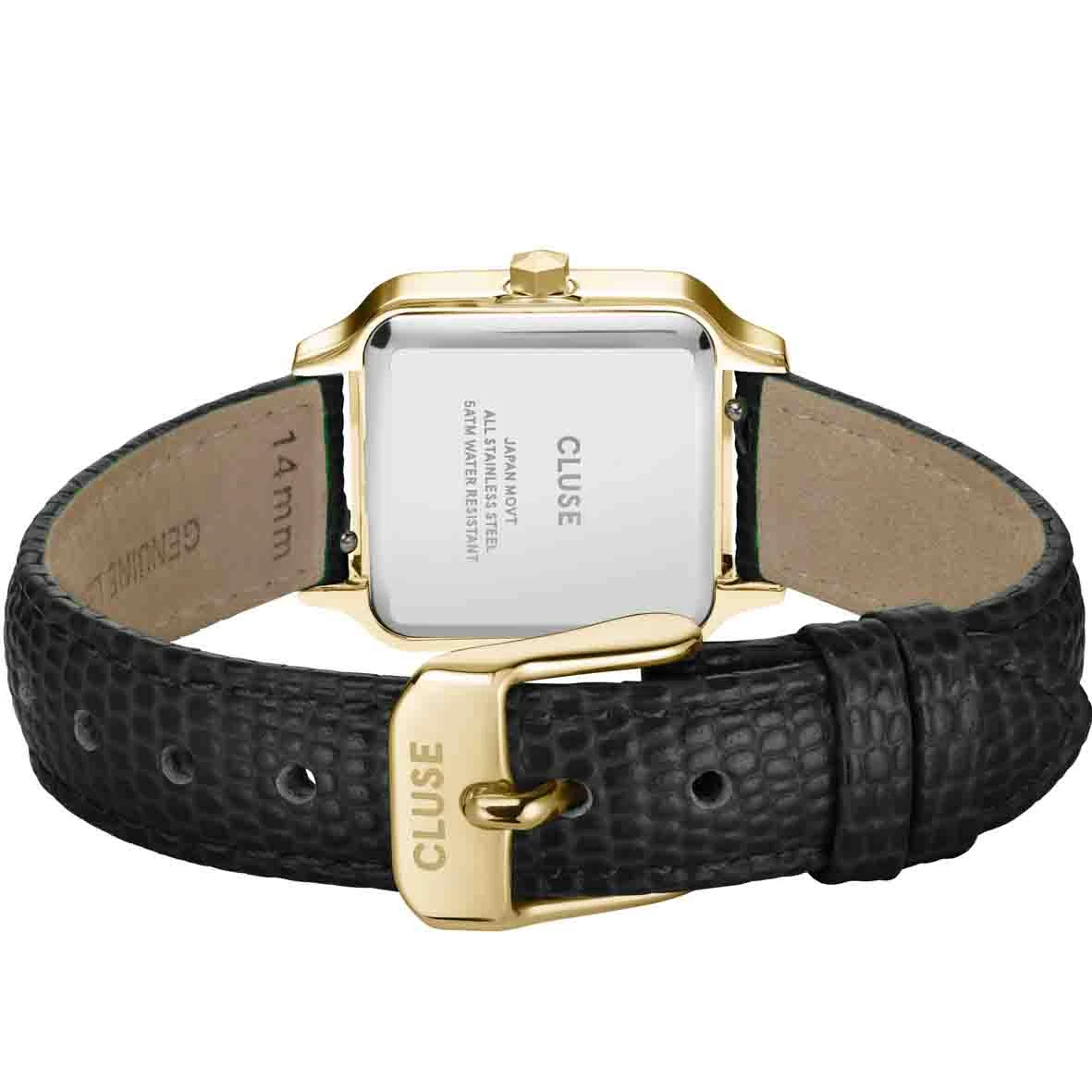 Elle est dotée d’un boîtier carré en or de 24 mm, d’un cadran blanc et d’un bracelet de montre en lézard noir de 14 mm. Un mélange intemporel de luxe et d’élégance pour sublimer tous vos styles vestimentaires.
