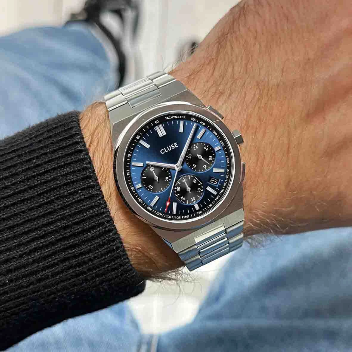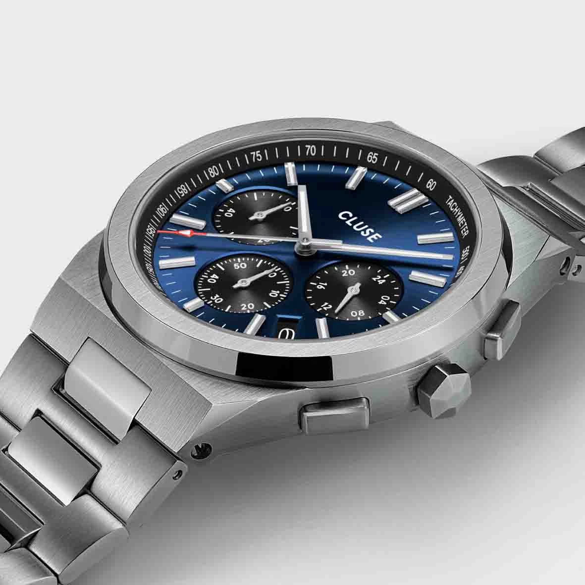 La Montre Cluse Vigoureux Chrono Steel Dark Blue, Silver Colour n’est pas seulement un accessoire, mais une dĂ©claration de style et de qualitĂ©, prĂŞte Ă accompagner l’homme moderne dans toutes ses aventures.