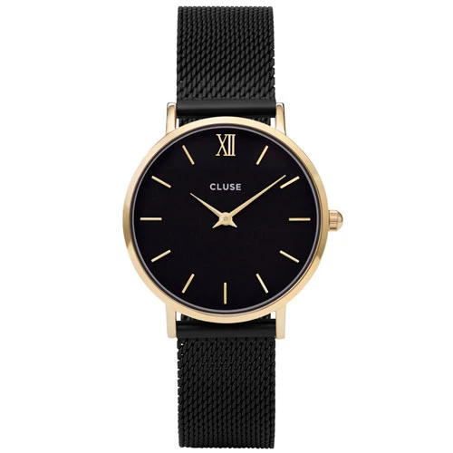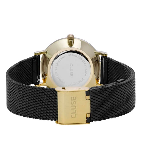 Montre Cluse Minuit Mesh Gold Black/Black portant la référence CL30026
