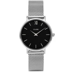 Montre Cluse Minuit Mesh Silver/Black portant la référence CL30015
