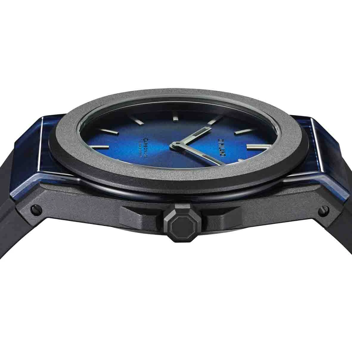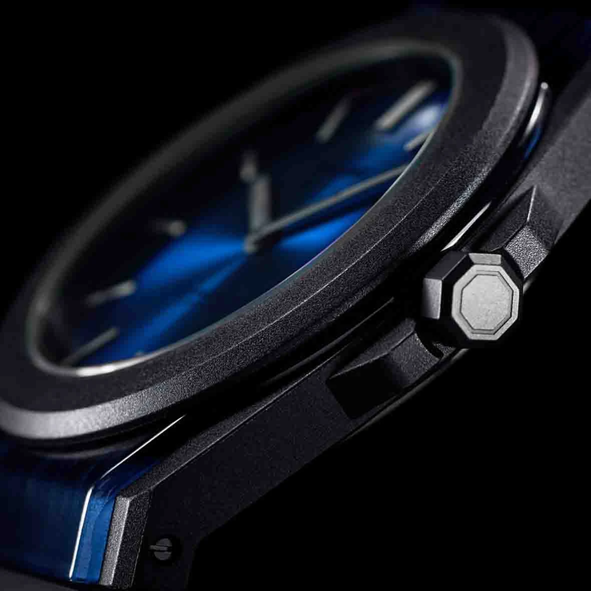 Bénéficiant de notre premier boîtier circulaire en composite de nylon de carbone stockant un cadran sandwich en fibre de carbone, un cadre extérieur en polycarbonate noir doux au toucher et un bracelet en silicone pour sécuriser le poignet.