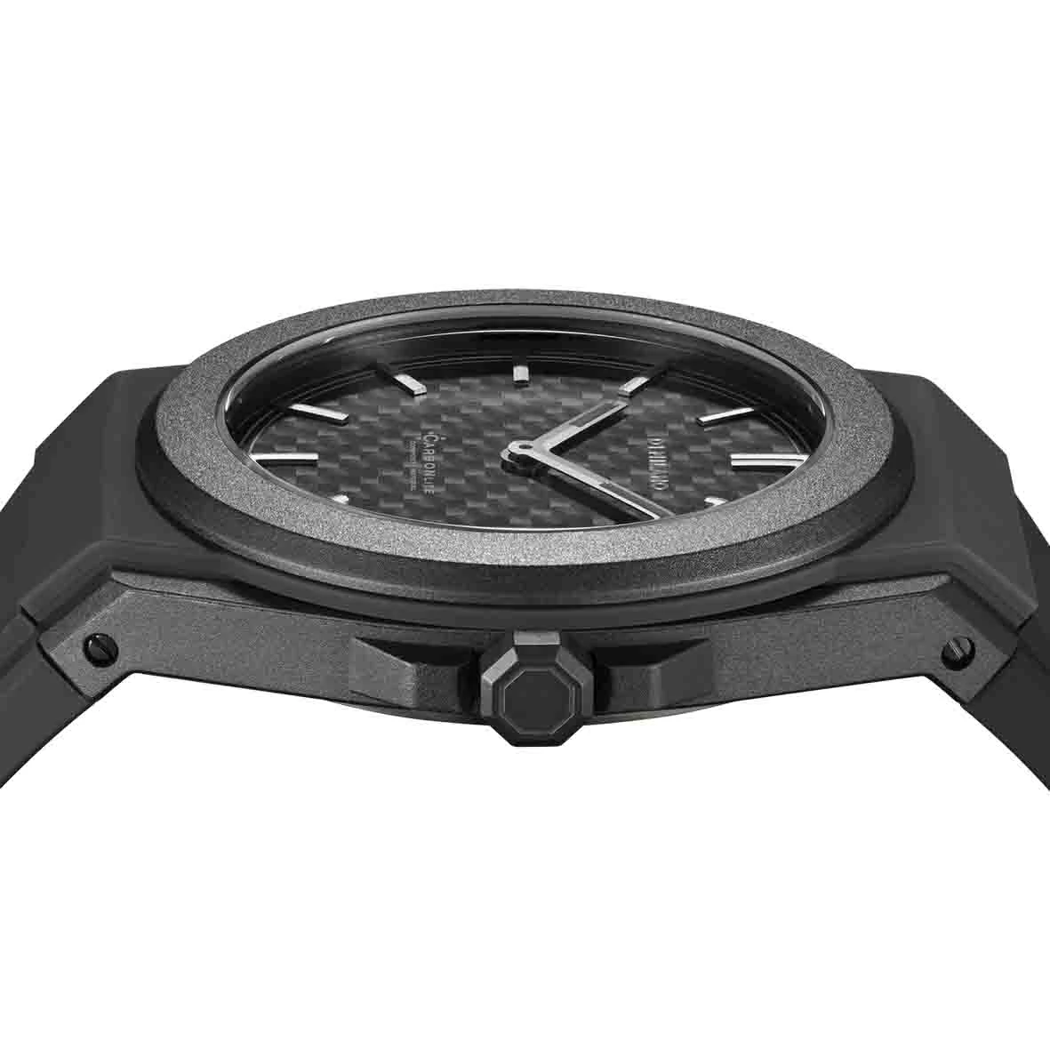 Bénéficiant de notre premier boîtier circulaire en composite de nylon de carbone stockant un cadran sandwich en fibre de carbone, un cadre extérieur en polycarbonate noir doux au toucher et un bracelet en silicone pour sécuriser le poignet.
