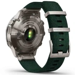 Affichez votre passion pour le sport. Cette Tool Watch nouvelle génération de luxe est dotée d’un bracelet en nylon tissé en trois nuances de vert, d’un superbe écran tactile AMOLED avec boutons classiques et d’une lunette de 46 mm en titane Grade 5 ultra résistant.