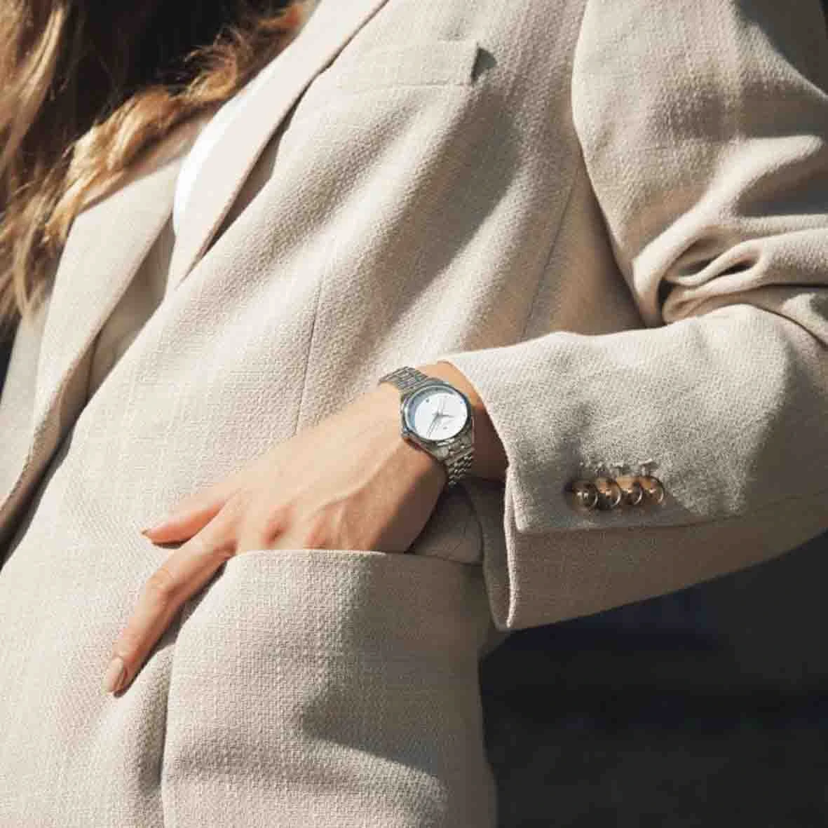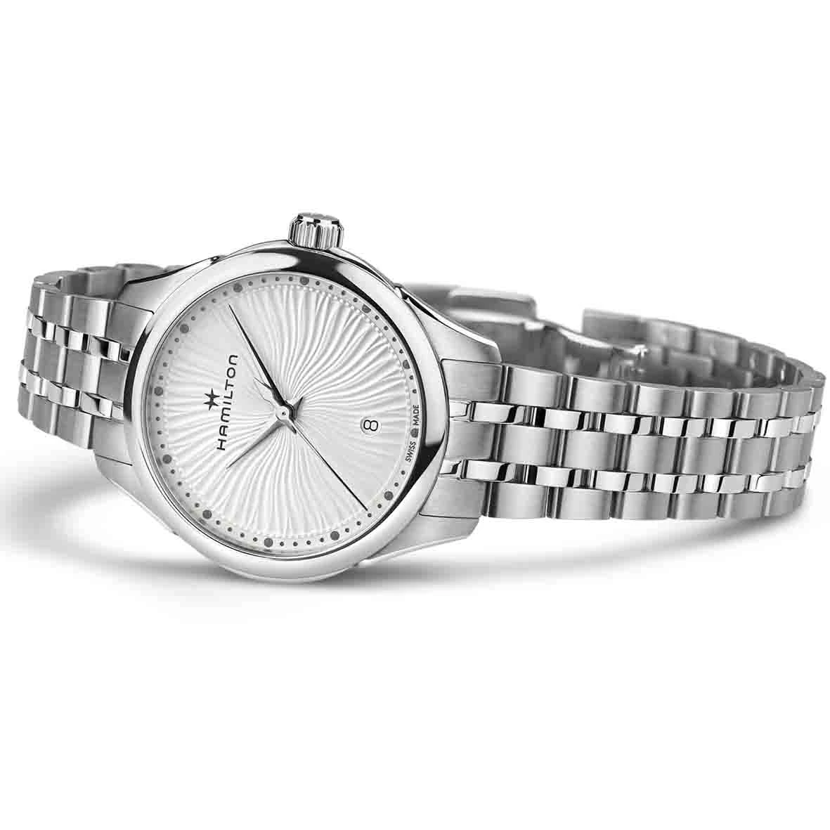 Des lignes élégantes donnent une impression de mouvement au cadran blanc argenté, bleu nuit ou velours noir de notre Jazzmaster Lady Quartz. Accompagnée d’un bracelet métallique épuré ou d’un modèle en cuir doux au toucher, cette montre sophistiquée de 30 mm rehausse tous les styles.