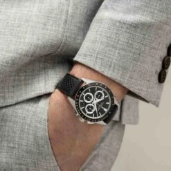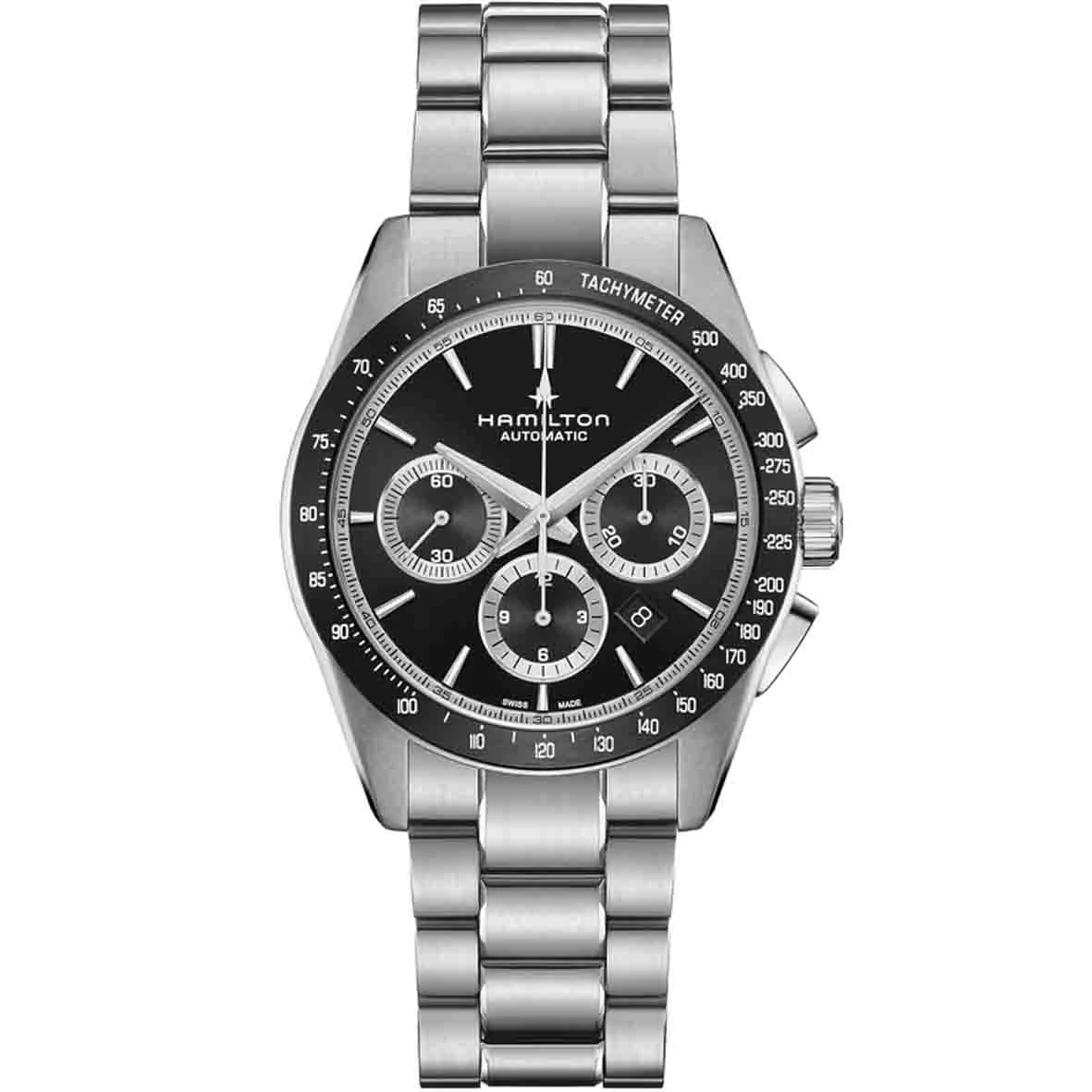Conçues pour les amateurs de fonctionnalitĂ© et de style, les montres Jazzmaster Performer offrent une allure sport chic affirmĂ©e. AnimĂ©e par le mouvement chronographe automatique H-31 avec une rĂ©serve de marche de 60 heures, cette Jazzmaster Performer Automatic Chronograph prĂ©sente un boĂ®tier de 42 mm en acier inoxydable rehaussĂ© d’un cadran noir sobre et d’un bracelet en cuir noir perforĂ© style sport assorti.