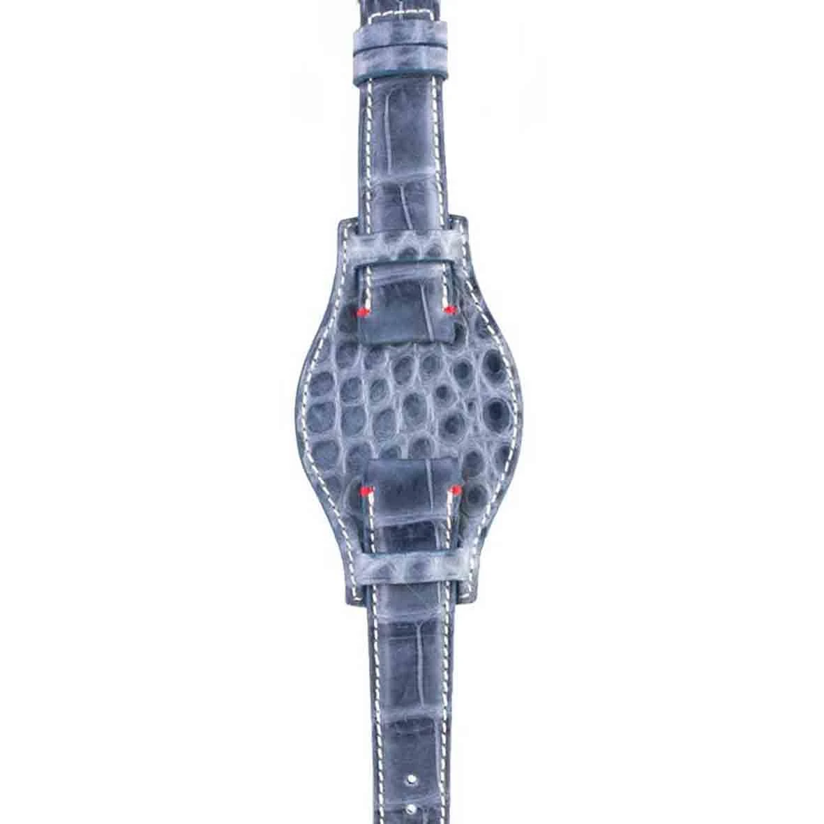 Au premier coup d’œil, les caractéristiques distinctives d’un chronographe Hanhart classique sont immédiatement apparentes : la disposition asymétrique des boutons, le bouton de remise à zéro rouge et, selon le modèle, la lunette tournante cannelée et le bracelet en cuir intemporel avec rivetage satiné.