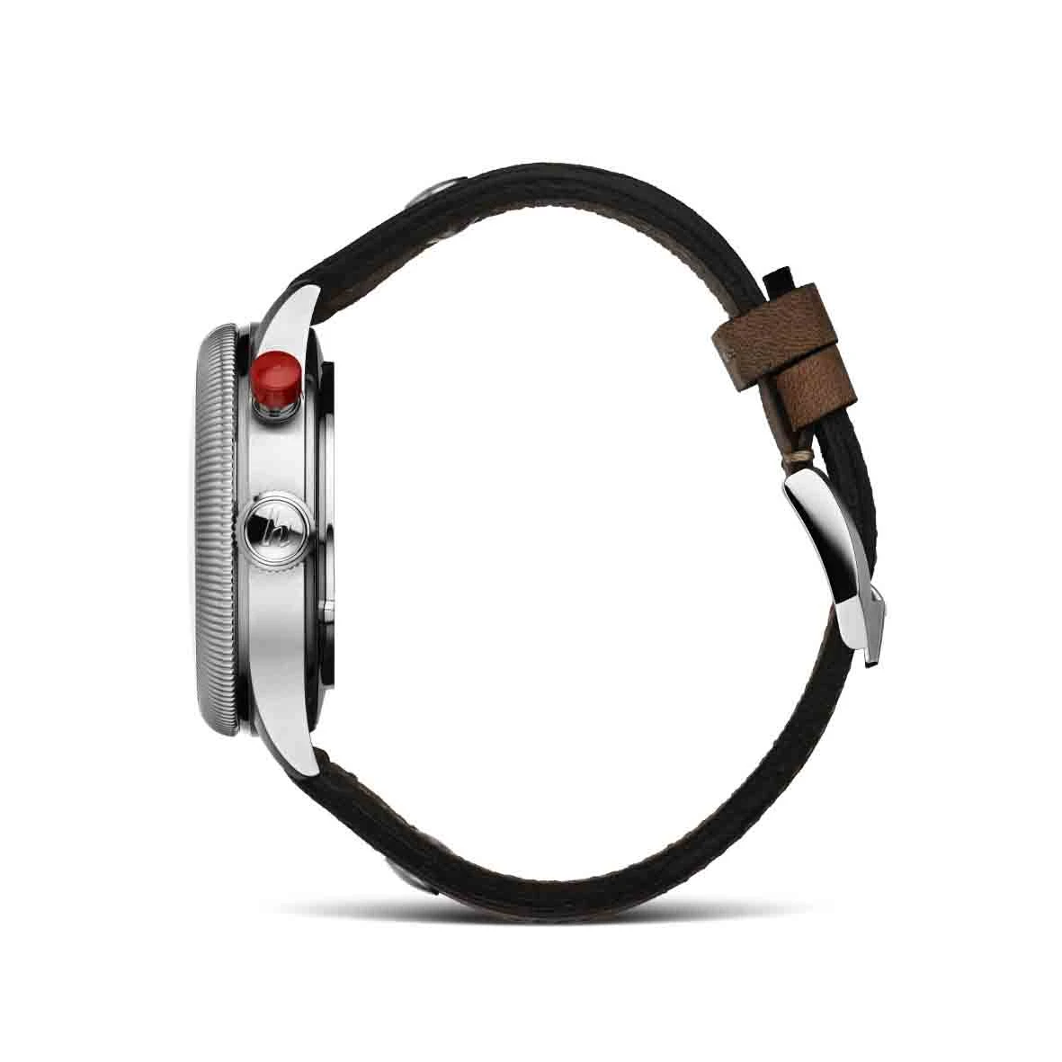 Tout comme ses prĂ©dĂ©cesseurs lĂ©gendaires produits par Hanhart, le PIONEER MonoScope dispose d’un seul bouton pour contrĂ´ler l’ensemble des fonctions du chronographe.Â
