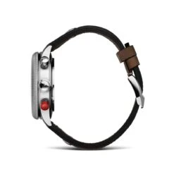 Au premier coup d’Ĺ“il, les caractĂ©ristiques distinctives d’un chronographe Hanhart classique sont immĂ©diatement apparentes : la disposition asymĂ©trique des boutons, le bouton de remise Ă zĂ©ro rouge et, selon le modèle, la lunette tournante cannelĂ©e et le bracelet en cuir intemporel avec rivetage satinĂ©.