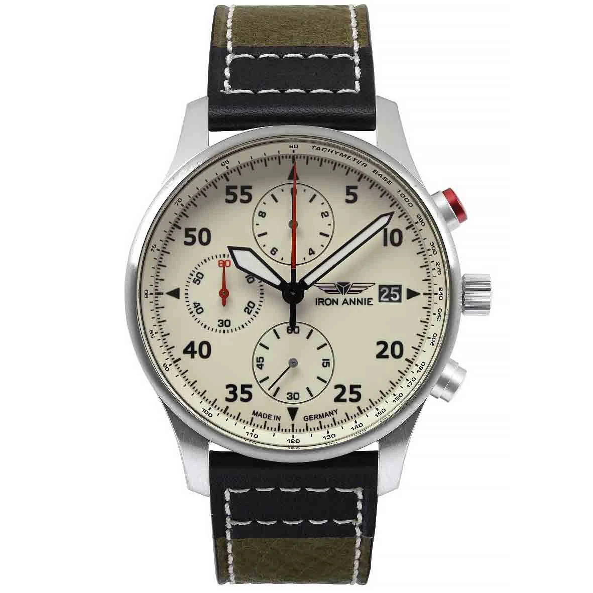 Chronographe à quartz Iron Annie pour homme avec bracelet en cuir