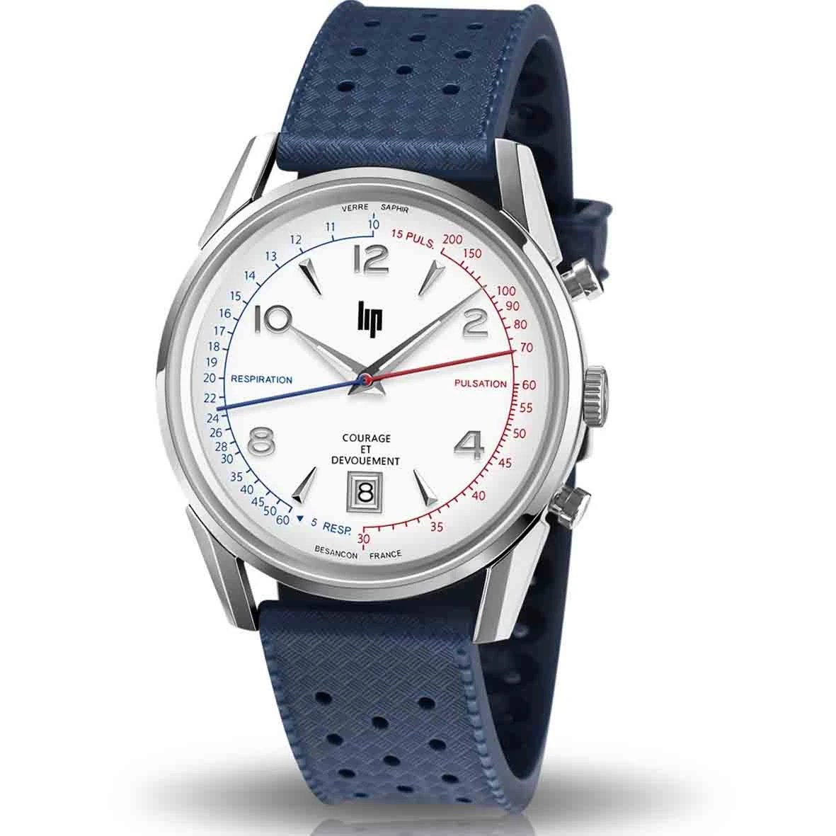 La montre LIP Courage a été développée par LIP, en partenariat avec la Fédération Nationale des Sapeurs-Pompiers de France (FNSPF), comme un outil d’aide à la décision pour tous les métiers du secourisme : pompiers, médecins, infirmiers et secouristes bénévoles.