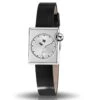 Le cadran de couleur argentĂ© est dotĂ© d’index triangulaires en relief.