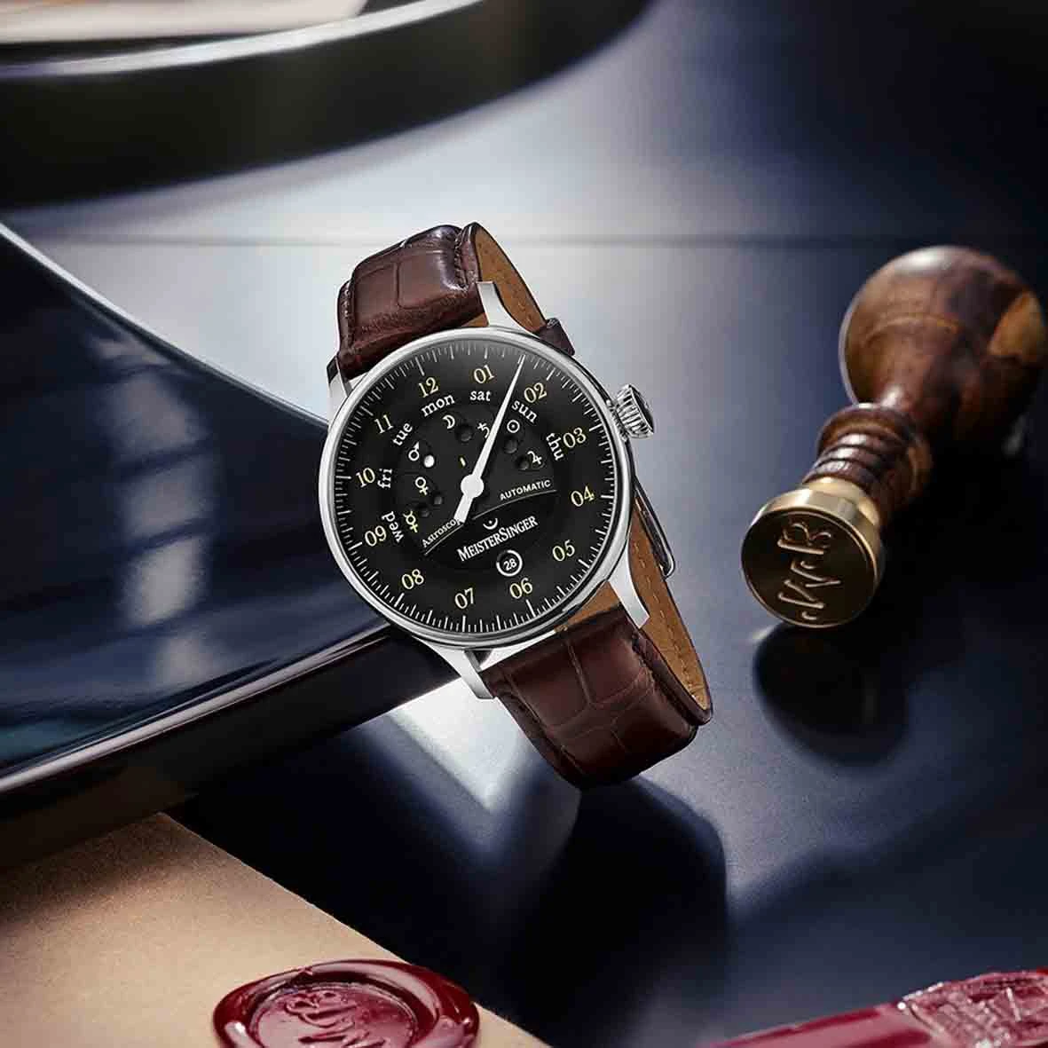 Montre MeisterSinger Astroscope Noir-Radium Vieilli