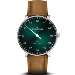Mais la Neo Vintage, en édition limitée pour la France, a un design plus jeune et est une véritable MeisterSinger de part en part, avec sa mono aiguille et des marqueurs des heures à deux chiffres tout autour dans une typographie fonctionnelle et un look vintage.