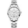 Cette montre propose un cadran blanc Ă chiffres Romains.