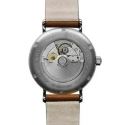 Son cadran satiné soleil très épuré est protégé par une élégante boîte ronde en acier inoxydable satiné, et souligné par une lunette polie.