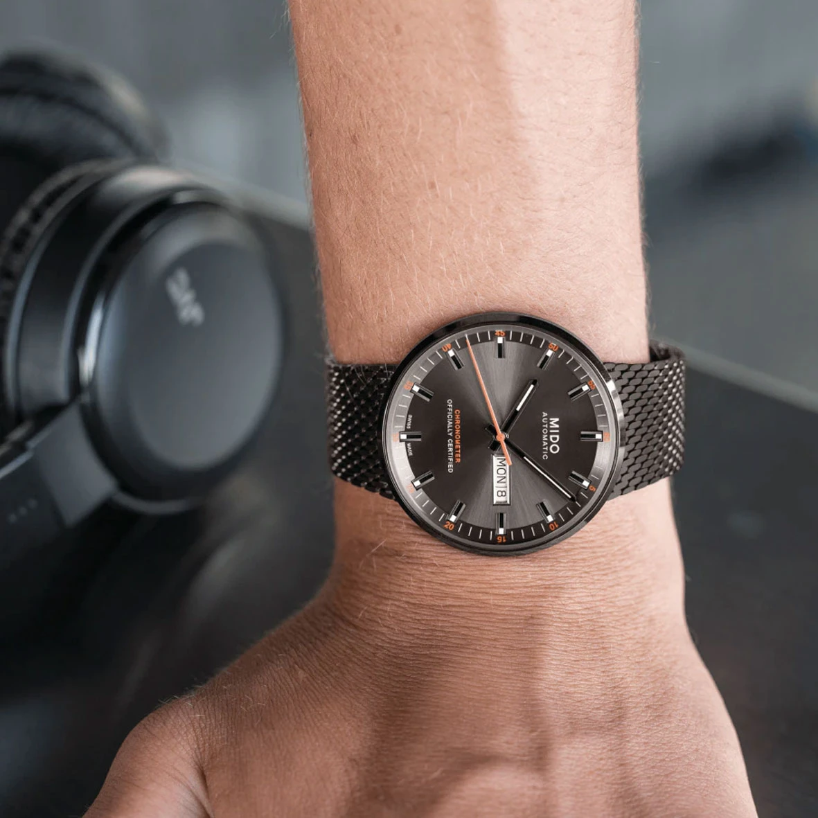 La montre Commander Icône rend hommage à l’un des modèles Mido les plus emblématiques. Son design néo-vintage reprend l’essentiel des codes qui ont fait le succès de la Commander: des lignes d’une grande pureté, l’espace maximal laissé au superbe cadran satiné soleil, sans oublier le bracelet à maille milanaise.