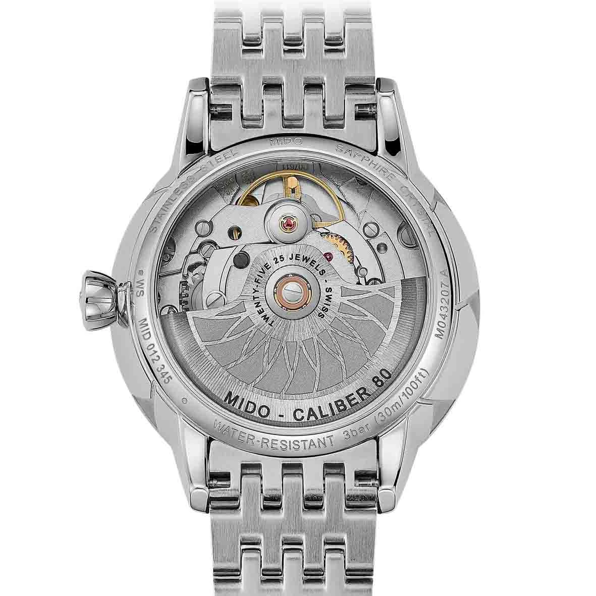 Le Calibre 80 de MIDO est un mouvement à remontage automatique nouvelle génération. Il offre jusqu’à 80 heures de réserve de marche, deux fois plus qu’un mouvement classique. Il est également disponible en version chronomètre, officiellement certifié par le COSC (Contrôle Officiel Suisse des Chronomètres) pour garantir sa précision supérieure.