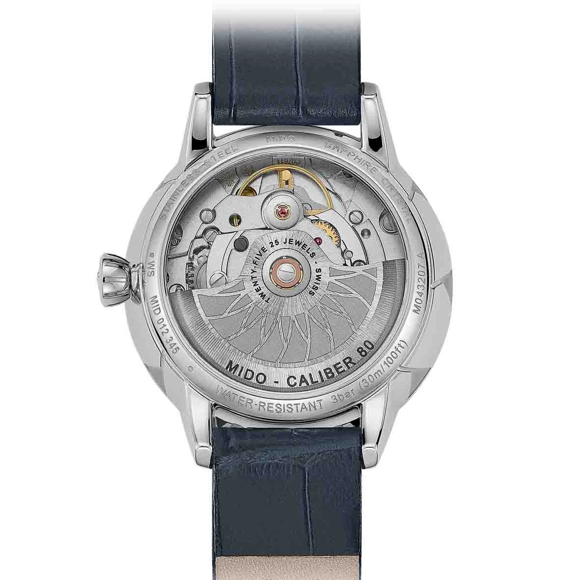 Le Calibre 80 de MIDO est un mouvement Ă remontage automatique nouvelle gĂ©nĂ©ration. Il offre jusquâĂ 80 heures de rĂ©serve de marche, deux fois plus quâun mouvement classique. Il est Ă©galement disponible en version chronomĂštre, officiellement certifiĂ© par le COSC (ContrĂŽle Officiel Suisse des ChronomĂštres) pour garantir sa prĂ©cision supĂ©rieure.