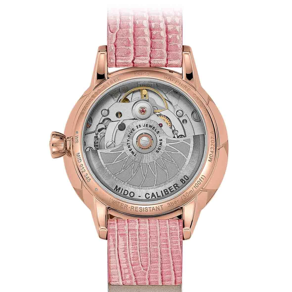 Le Calibre 80 de MIDO est un mouvement Ă remontage automatique nouvelle gĂ©nĂ©ration. Il offre jusquâĂ 80 heures de rĂ©serve de marche, deux fois plus quâun mouvement classique. Il est Ă©galement disponible en version chronomĂštre, officiellement certifiĂ© par le COSC (ContrĂŽle Officiel Suisse des ChronomĂštres) pour garantir sa prĂ©cision supĂ©rieure.
