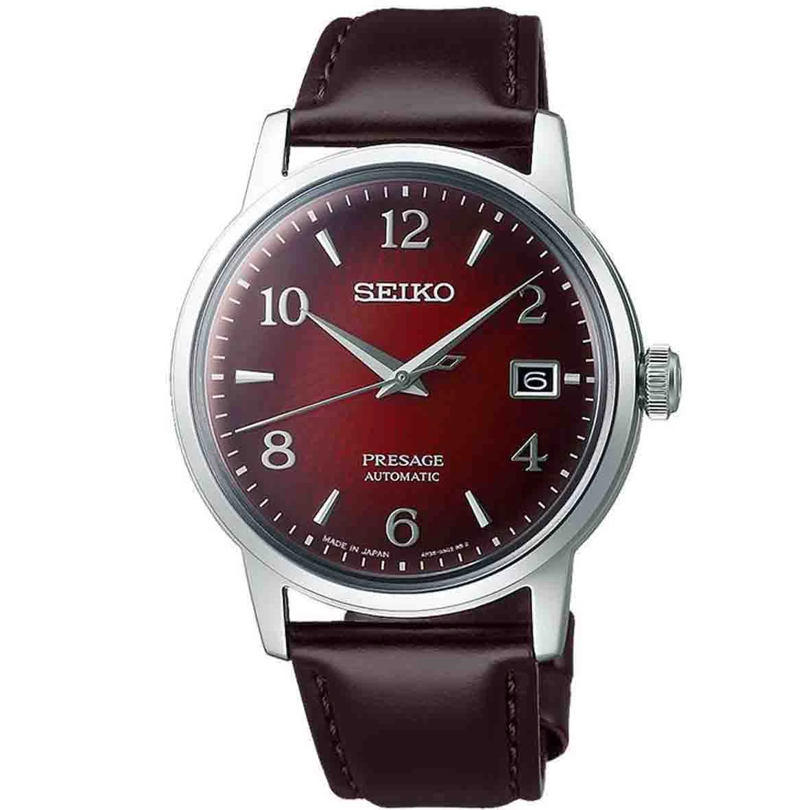 Le rouge du cadran de ce modèle SRPE41J1 trouve son inspiration dans la couleur du Negroni, un cocktail à base de gin, de vermouth rouge et de Campari.